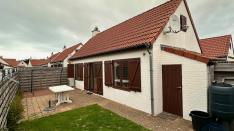 Aux deux côtés de la maison il y a une belle terrasse. Soleil pendant toute la journée. Débarras pratique pour vos vélos, materiaux de plage, bois,.. parking compris dans le prix de vente.
