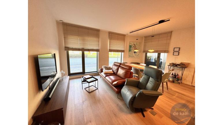 Leuke woonkamer gelegen langs de straatkant, met een mooi zicht op het monument van Albert I en het sluizencomplex.