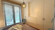 Twee volwaardige kamers die allebei ingericht werden met inbouwkasten. De kamer aan de binnenzijde van het gebouw geeft uit een op een gezellig ingesloten terras.