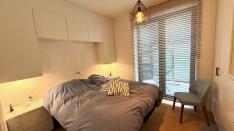 Twee volwaardige kamers die allebei ingericht werden met inbouwkasten. De kamer aan de binnenzijde van het gebouw geeft uit een op een gezellig ingesloten terras.